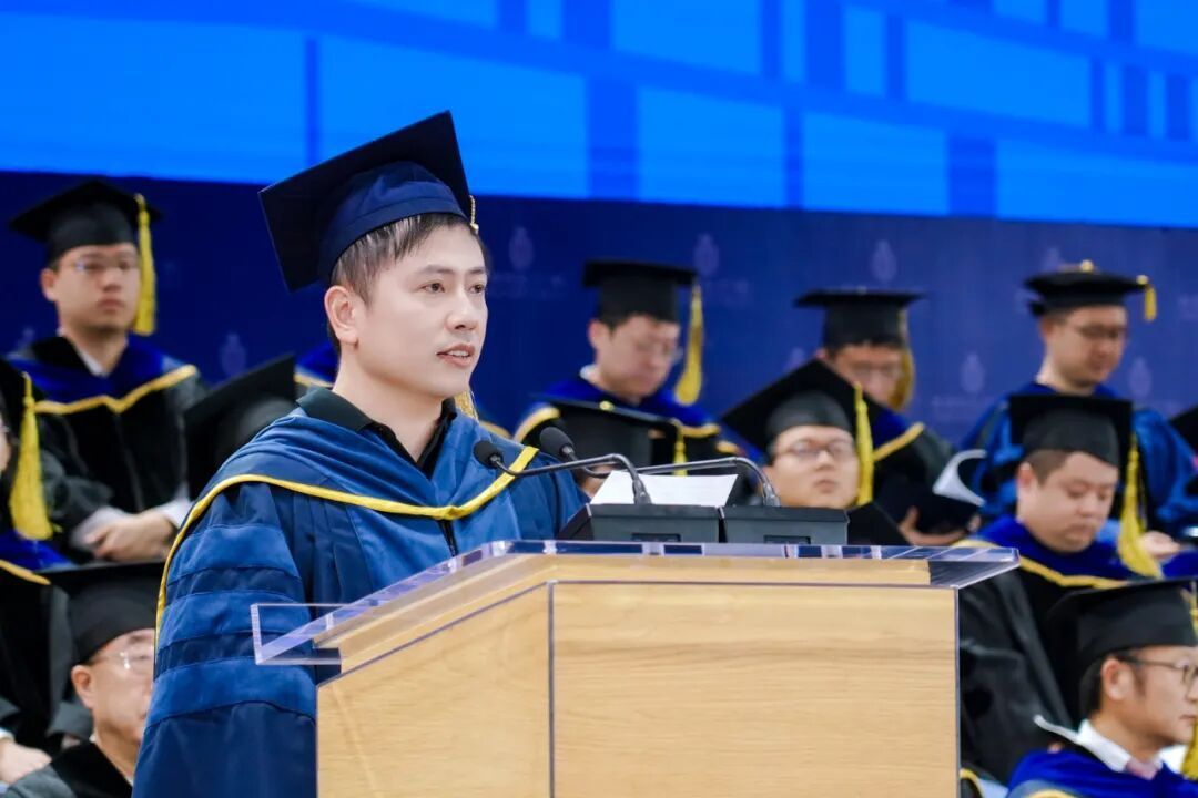 他在发言中号召全体毕业生:“在这个充满机遇的时代,让我们一起把中国的创造力与创新精神带向世界的舞台!我们一起去构建、去实现,让这份梦想变得更大、更远!”